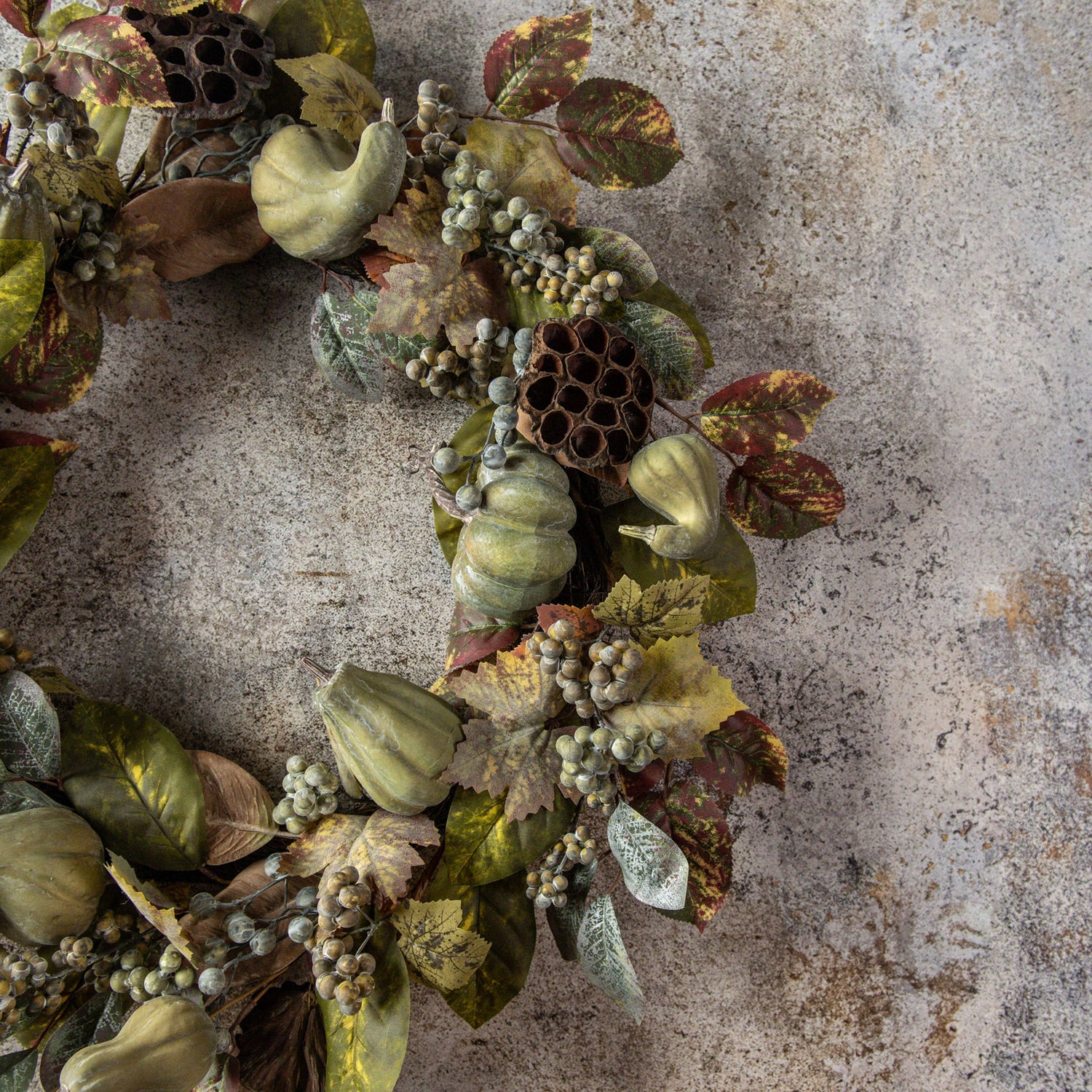 32" GREEN BERRY, GOURD & LOTUS POD WREATH