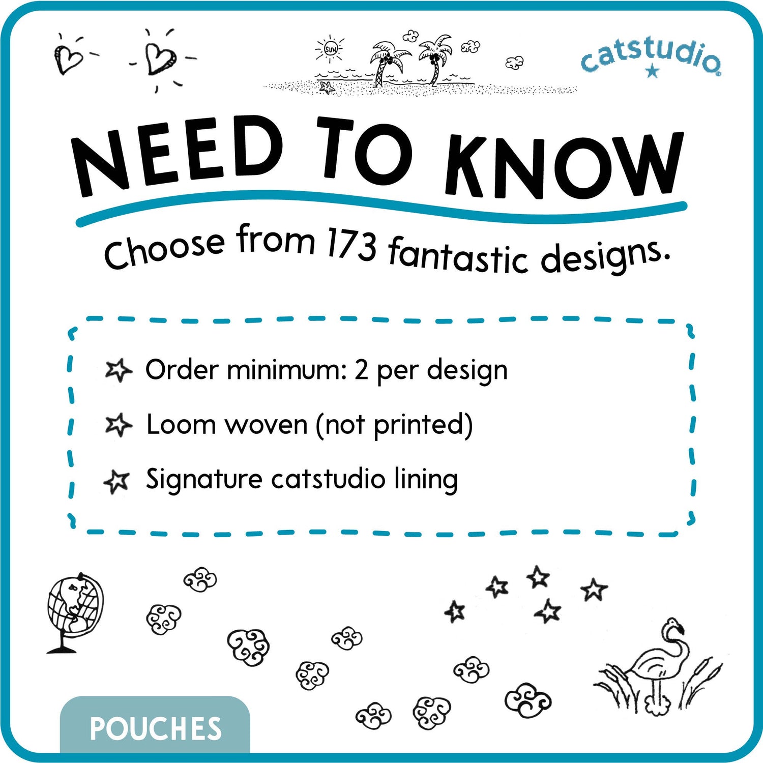 HOW THEY'RE MADE: Our pouches are uniquely WOVEN (not printed!) on luxe poly fabric that resists dirt, stains, shrinking, and stretching. Can be spot-cleaned and measures 7" x 5.5".