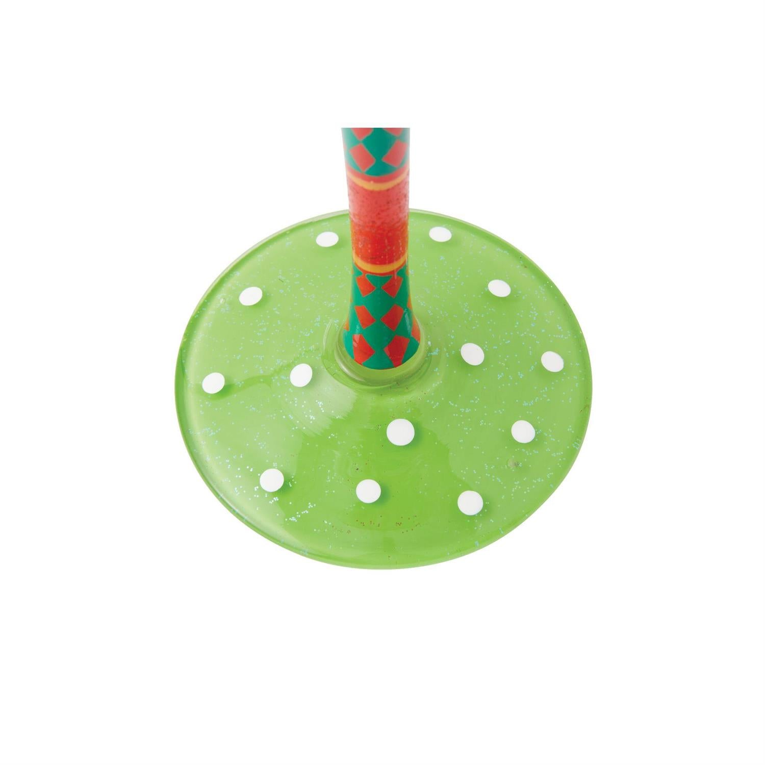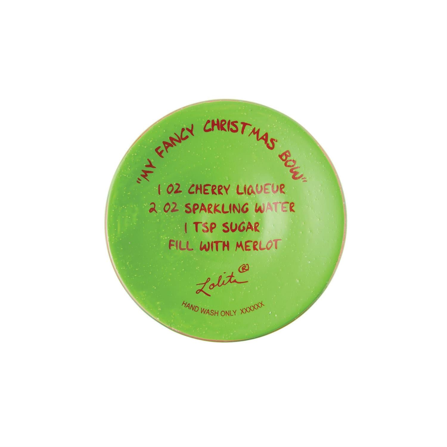 This festive hand-painted wine glass from Lolita is a gift to enjoy again and again. With a fancy red and green bow, enchanting patterning, and mistletoe, this gorgeous glass wraps your favorite beverages with glitter for season-long holiday cheers. Blown glass. Hand wash.