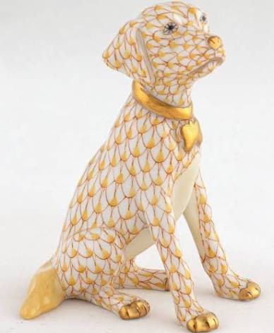 This Herend Young Golden Figurine is crafted from fine Herend porcelain and features an adorable sitting golden retriever puppy wearing a collar. The figurine is an ideal gift for any dog enthusiast and is an elegant way to bring charm and character to any room.