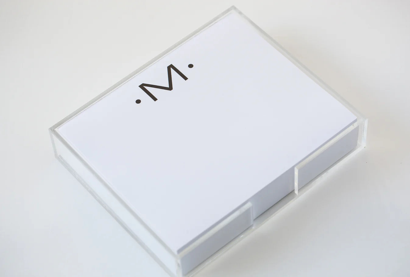 Dress up your desk with our crystal clear, high quality acrylic tray. Black Ink Luxe Notepads fit perfectly in this custom made tray. Notepad not included.