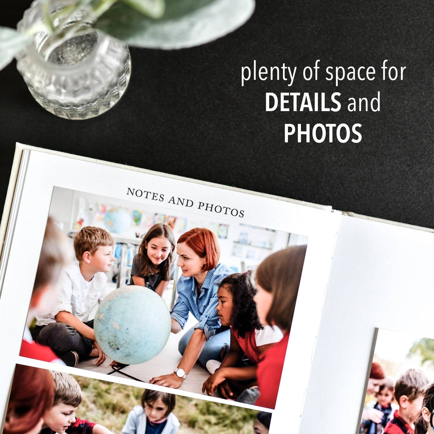 It's time to buy a gift for the amazing teacher in your life and you don't want to get them another #1 teacher mug or floral scented candle they don't need. Quick! What do you do?! We've got you covered with our unique and thoughtful Teacher Memory Book. Capture all your favorite moments each school year with this keepsake journal. With space for prompted questions, student quotes, photos and more, you can save your classroom memories for years to come.