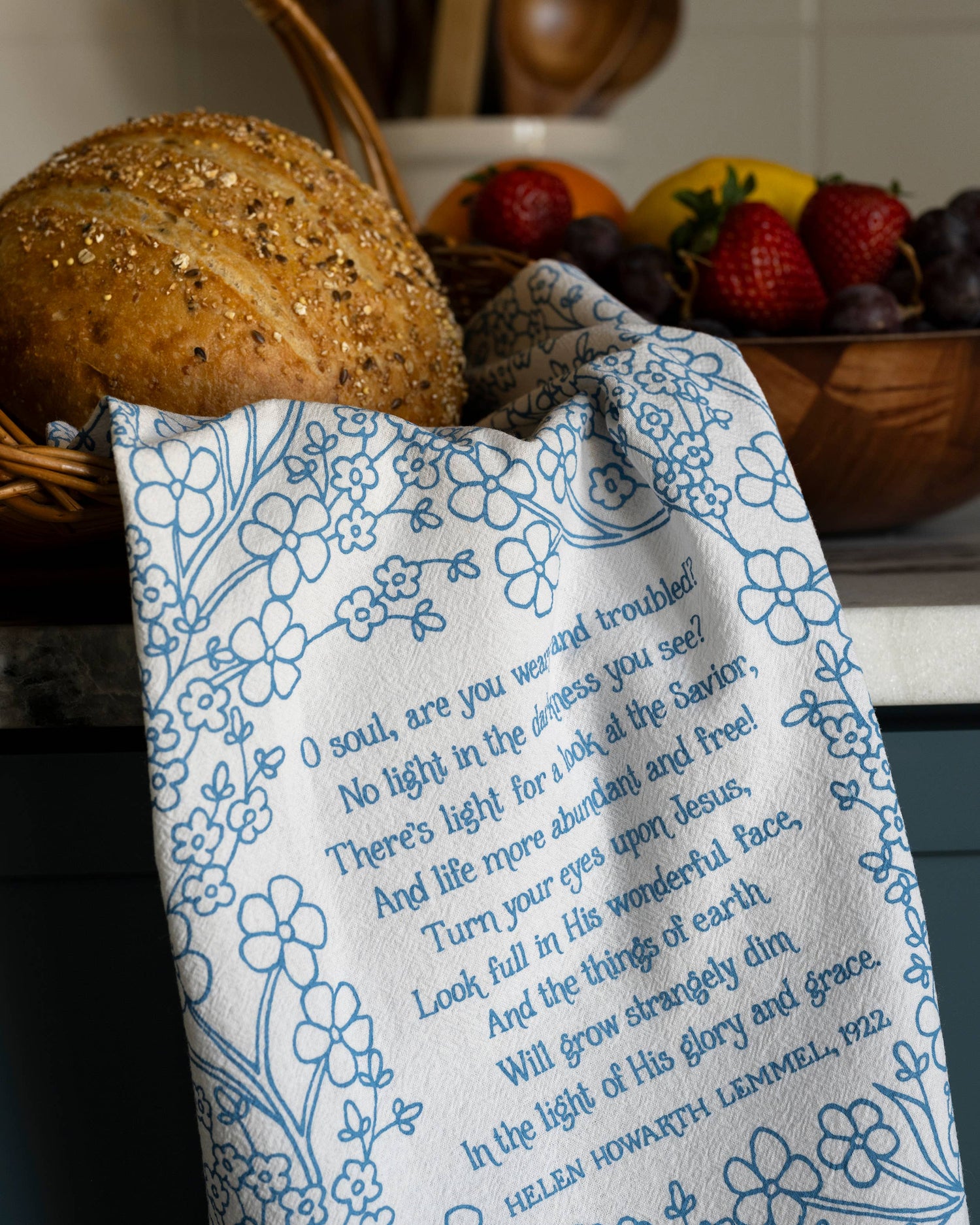 Our hymn tea towels brighten your home with color and song. he Turn Your Eyes Upon Jesus hymn tea towel is printed in COLOR and features lyrics from the hymn accented by intricate floral design. Made of 100% cotton, these flour sack tea towels easily and cost-effectively replace disposable paper towels with high absorbency and durability. Generously sized, lint free, and made to last a lifetime. Illustrated by Kate Whitley.